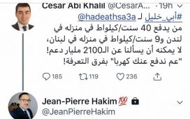 Jean Pierre Hakim#لبنان_القوي على أساس انتو تدفعون كهرباء و تذكر انو كل مصاريف الكهرباء التي تستعملونها هي على حسابنا فبنصحك ولا كلمي بقى كرمالك و كرمال تخفف بهدلي لألك